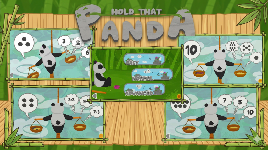 In Hold That Panda, designed ages 3 and up, children meet a panda who loves walking the tightrope. However, he loses his balance easily if the weight isn’t distributed perfectly. To keep him steady, players must ensure that both baskets he carries contain an equivalent quantity of objects. It is a visual, tactile way to teach children equivalency and help them develop their initial understanding of number sense in a fun and engaging way.